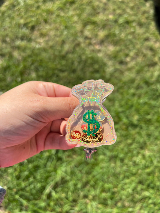 Organ transplant badge reel, interactive ID holder. Shaker badge clip
