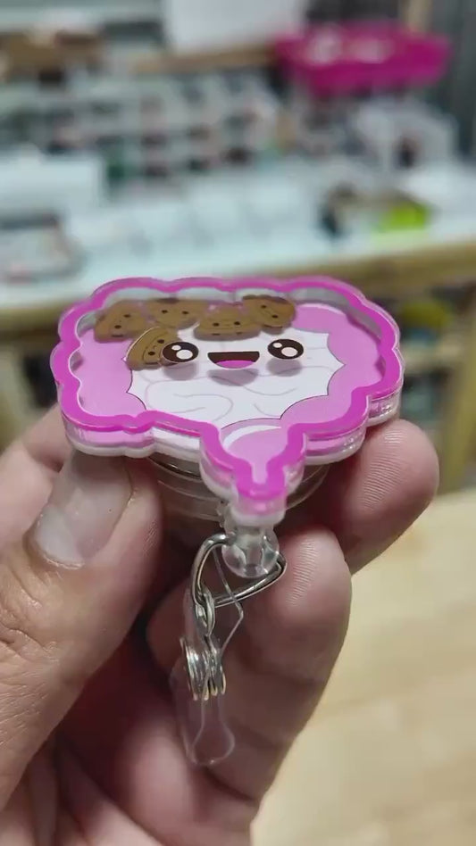 Kawai intestine with poop badge reel, gastroenterologist ID holder. Shaker badge clip