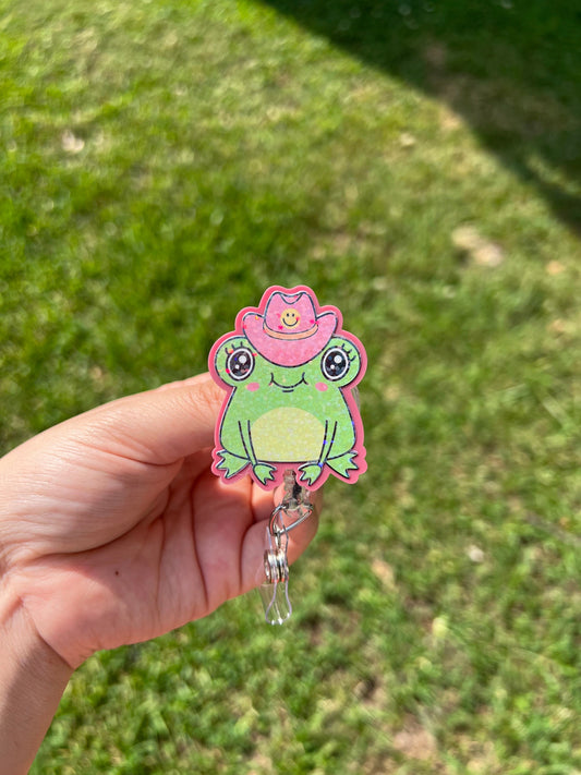 Cowgirl frog badge reel ,Mental health badge reel, mental health matters, nurse badge holder, retractable ID holder