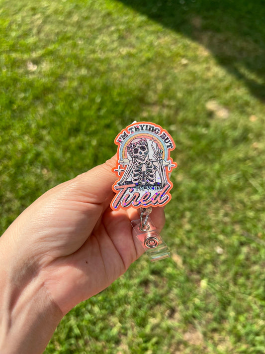 I tried but I’m very tired badge reel ,Mental health badge reel, mental health matters, nurse badge holder, retractable ID holder
