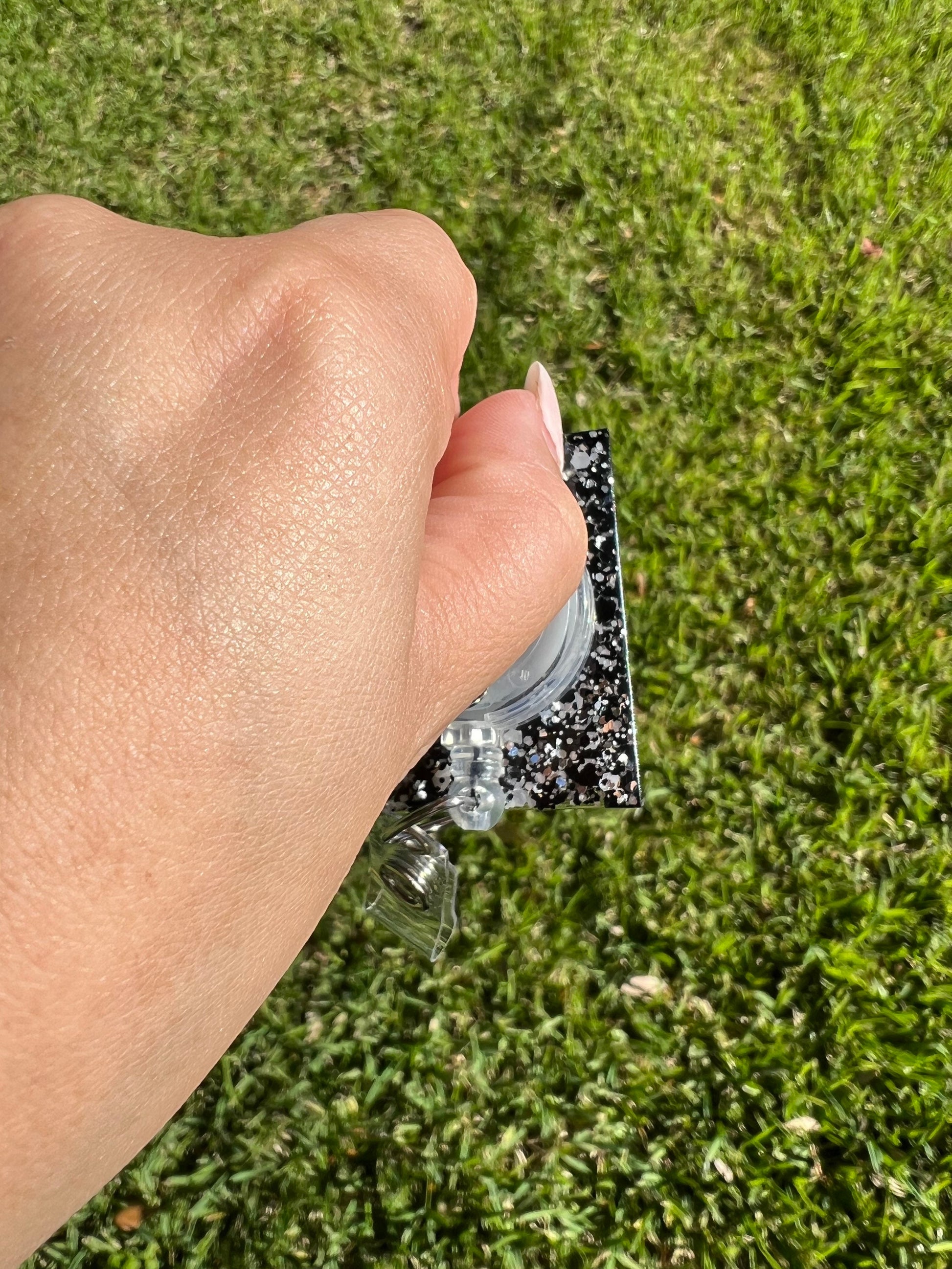 🧡2” badge reel made of acrylics resin and glitter if you choose that option