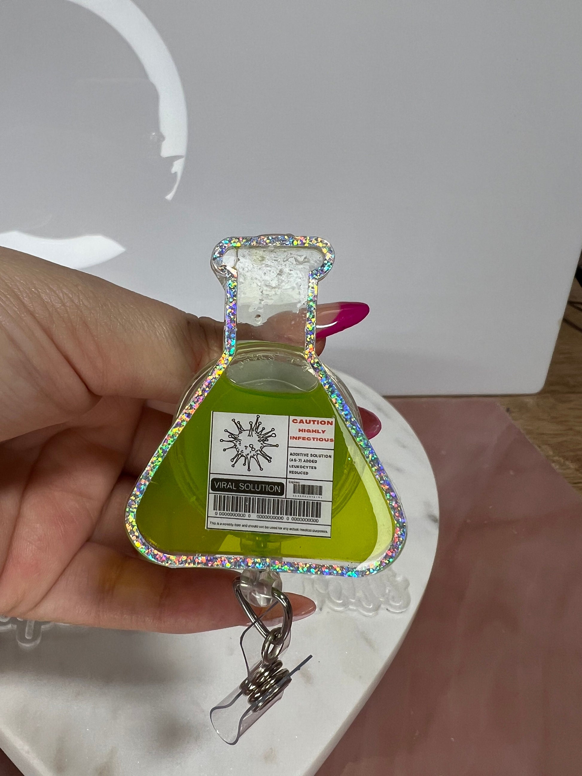 Lab beaker badge holder, lab life badge clip , lab tech accessories, gift for lab technicians, viral solution badge