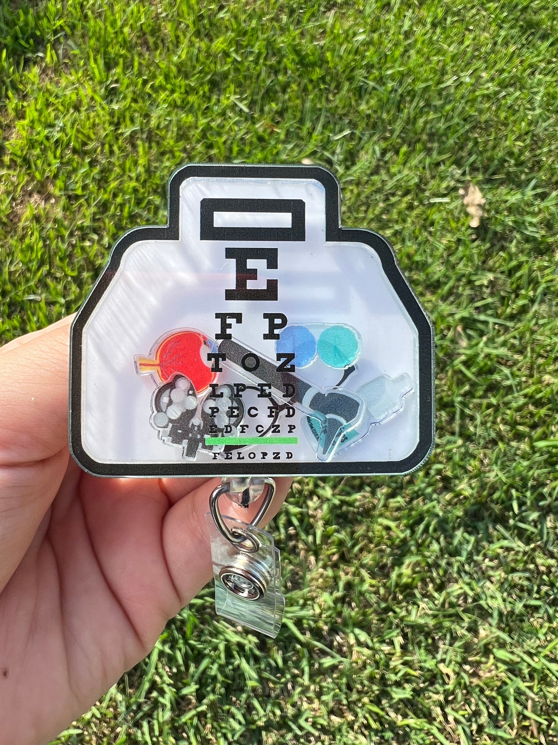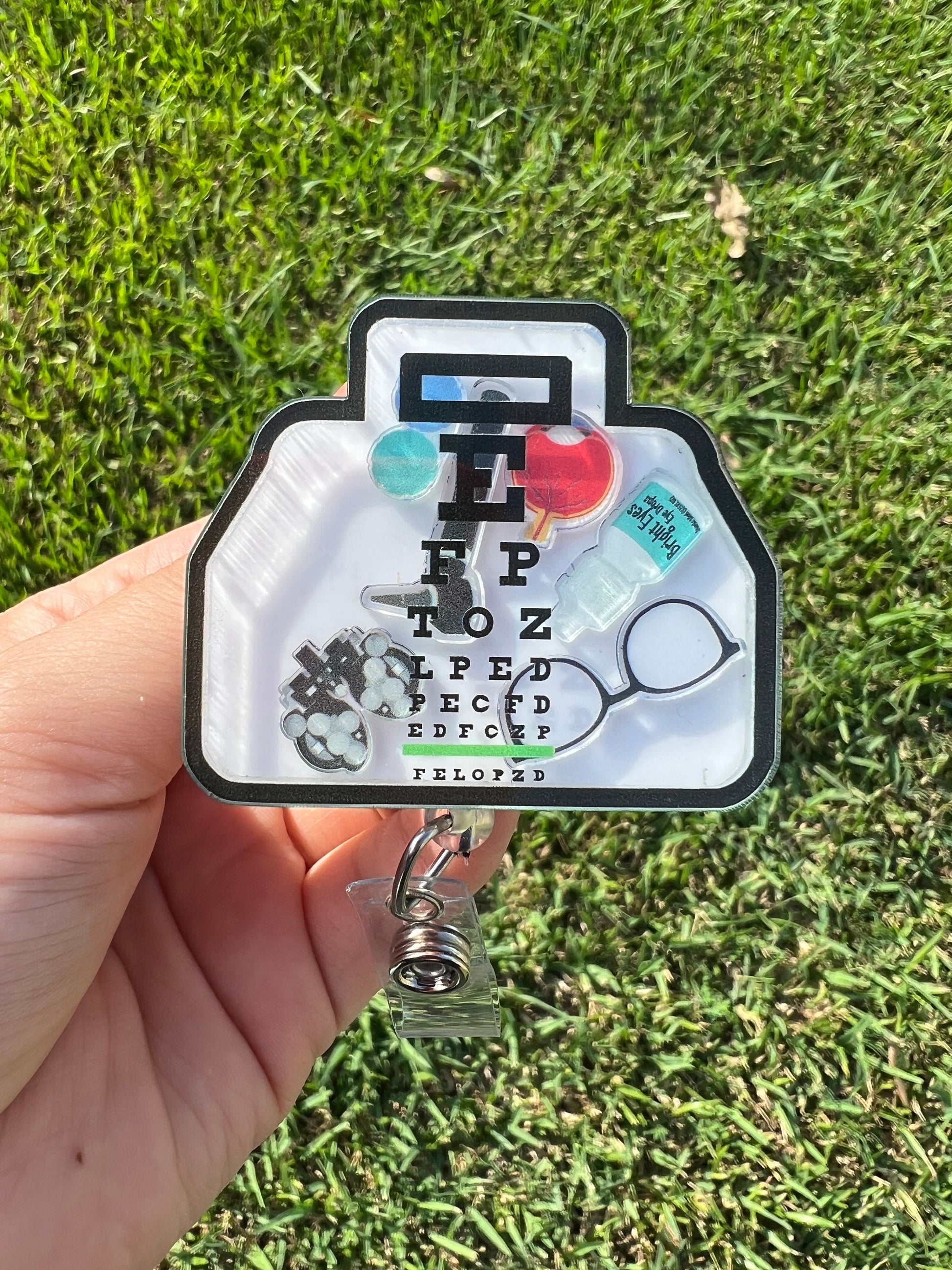 Ophthalmologists and optometrists badge reel, eye doctor , eye chart badge holder, interactive ID holder. Shaker badge clip