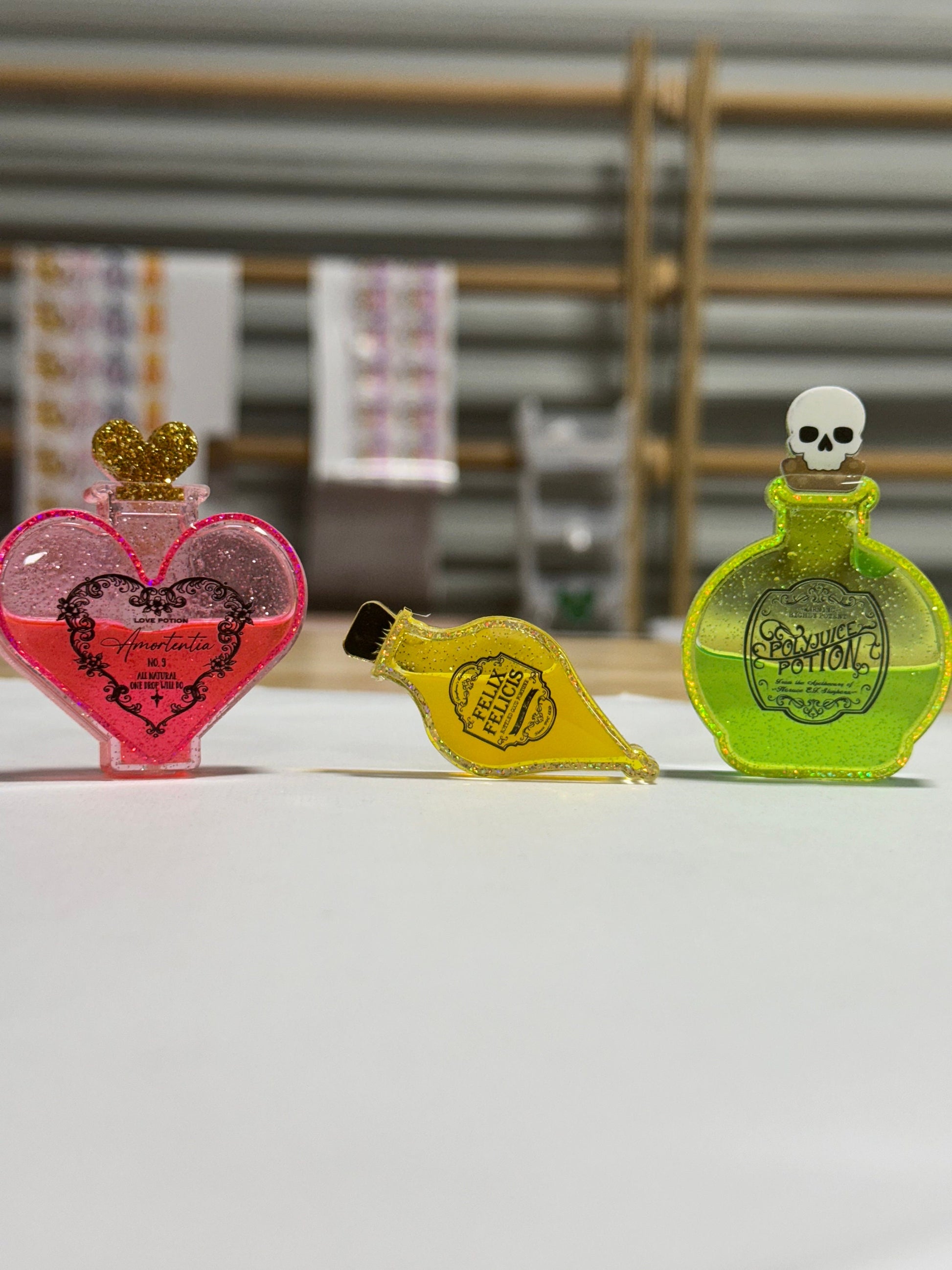 Potion bottle, Felix felicis badge reel, poly juice bottle badge clip,amortentia ID holder.