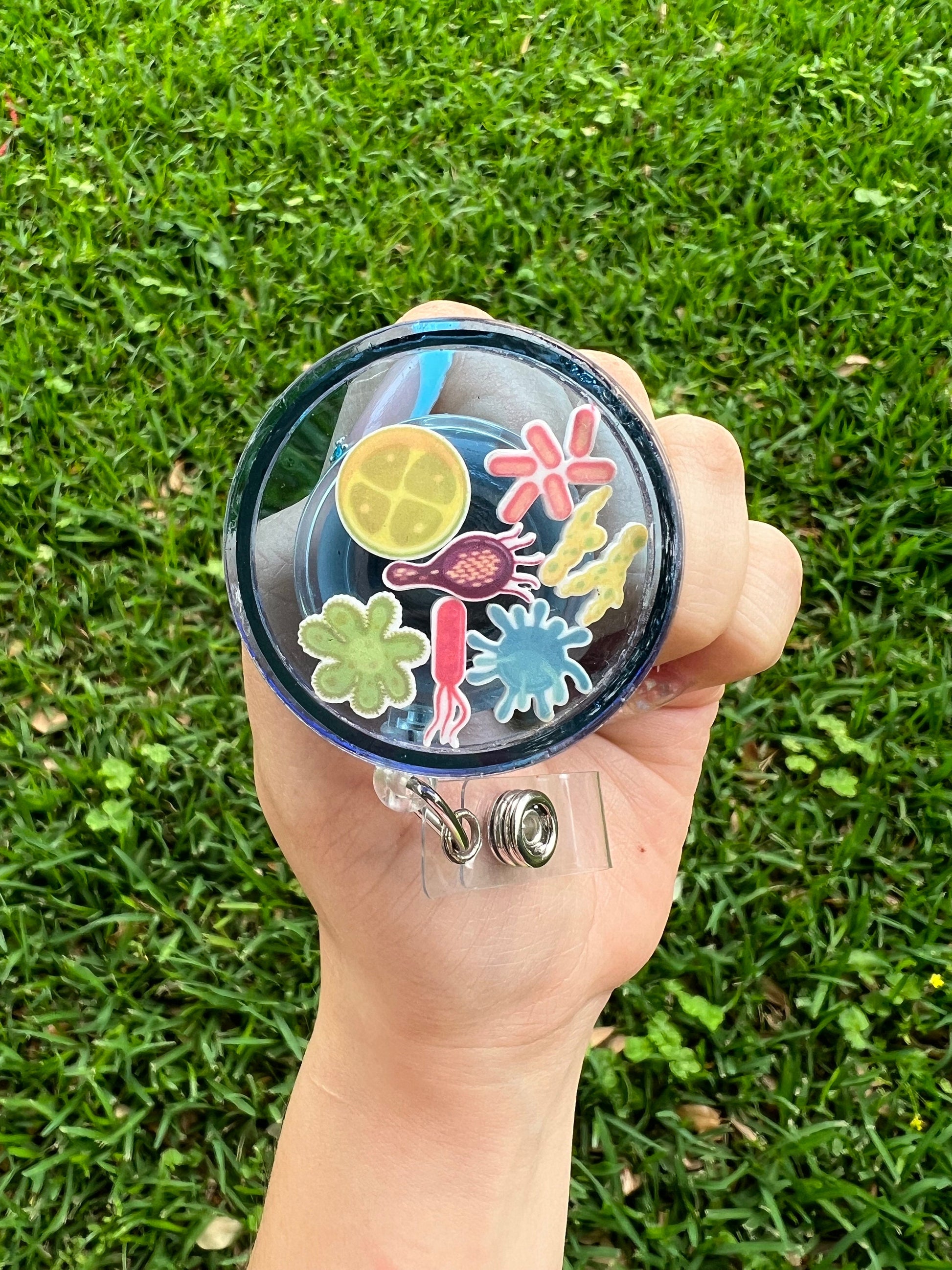 Unique Badge Reel for Lab Techs & Microbiologist,Petri dish badge reel,Bacteria badge clip