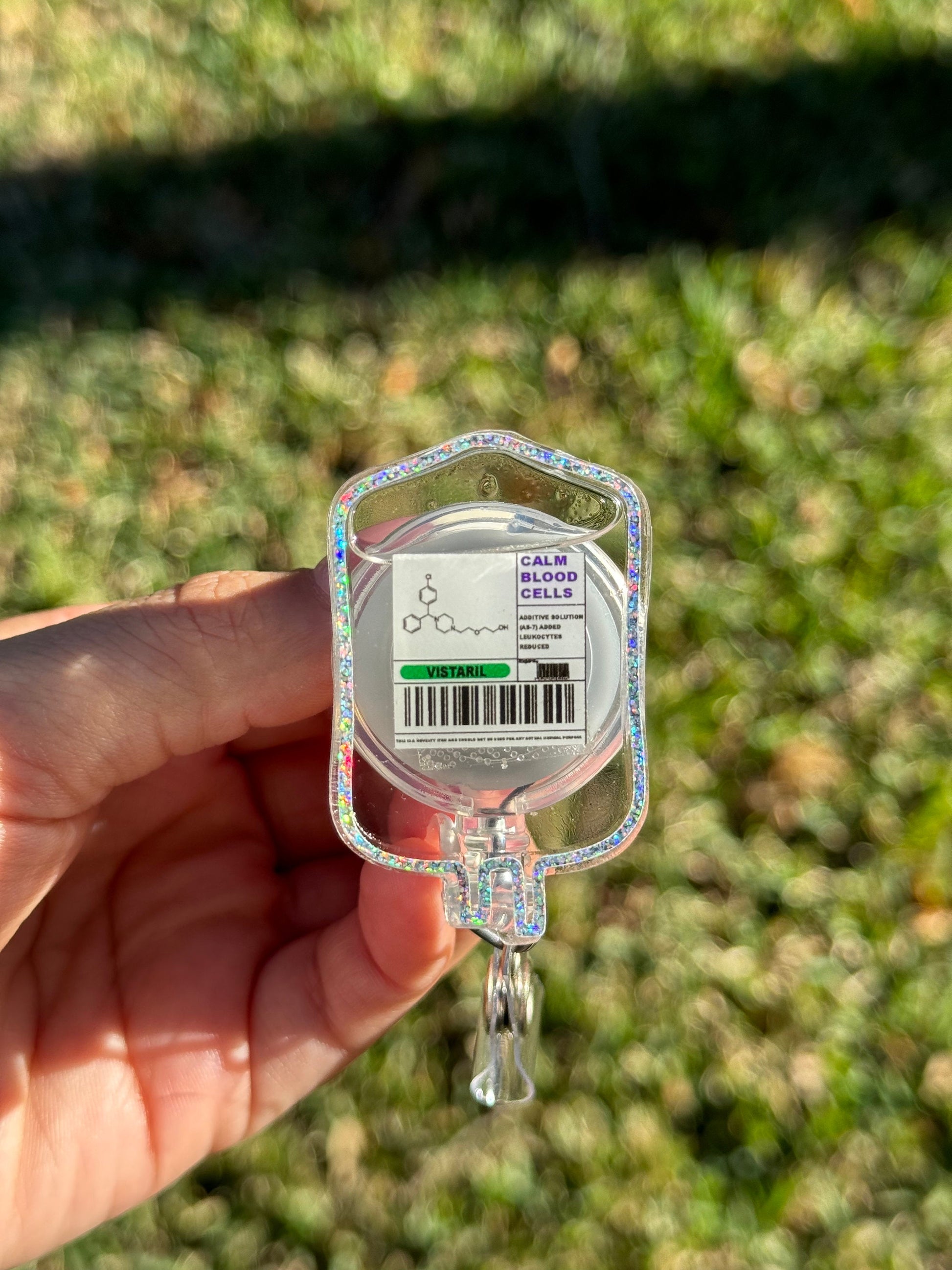 Vistaril IV Bag Badge holder |Blood Transfusion Badge Reel, IV bag Badge Reel, Phlebotomy badge reel, nursing school graduation gift
